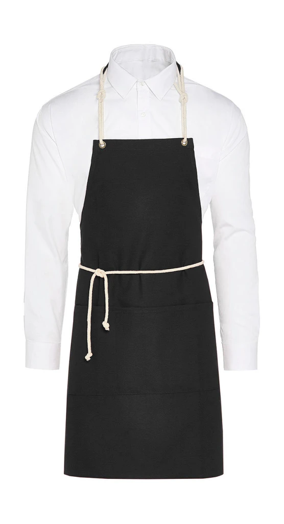 This is a bib apron with a difference, on trend and practical too. Made of canvas and featuring natural cord ties going through antique brass eyelets on the waist and around the neck (adjustable as well), a smart front pocket, it's designed to make teams look Fashionable and Professional. The colours are also "on-trend" : choose from different stand-out shades, designed for their uniqueness. Washable at 60°, it's also colourfast and easy care, for a long-lasting fresh look.