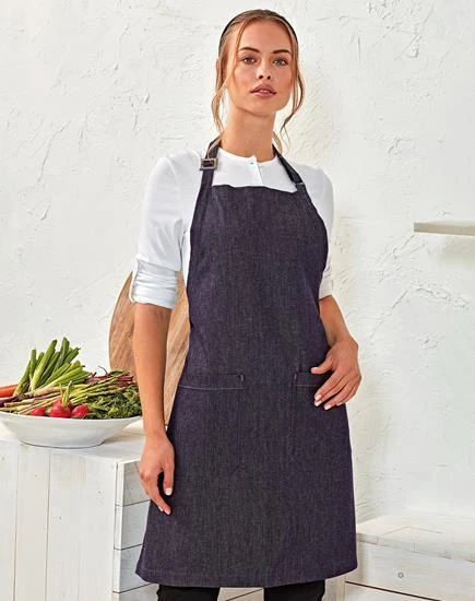 A stunning denim apron made with 100% Organic Fairtrade Cotton. Two handy patch pockets are finished with contrast stitch detail and the overall apron length can be adjusted with a buckle on the neckband.