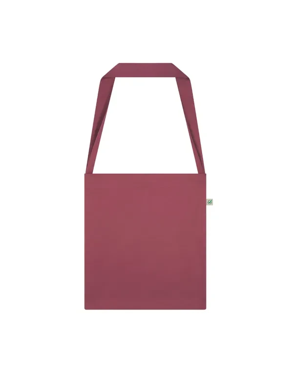 A subtle Earth Positive® flag label positioned on the side seam highlights the bag’s ethical and organic production standards. This understated branding element reinforces its low-impact credentials while maintaining a clean, decoration-ready appearance.