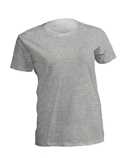 Body fitted. Round Neck. Single jersey. Double stitch on sleeves and bottom. Collar type. 1x1 rib neck.