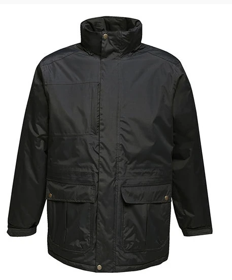 Waterproof Hydrafort 5000 peached polyester fabric, windproof fabric, Thermo-Guard insulation, taped seams, 160 GSM body insulation wadding weight, concealed hood with adjusters, adjustable cuffs, 2 lower pockets with zipped handwarmers and 2 lower cargo pockets, mobile phone pocket, inner security pocket and zipped chest pocket, concealed zip entrance in lining for embroidery access