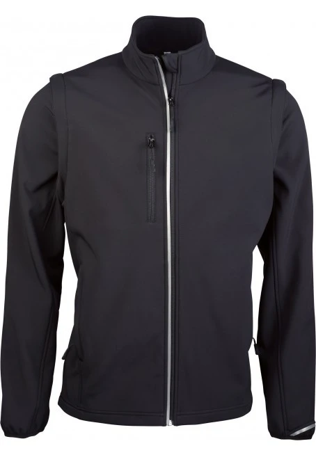 95% polyester / 5% elastane. 3 layers bonded fabric. Breathable up to 3000g/m2/24h and water resistant up to 8000mm. 95% polyester / 5 % elastane outer shell. Breathable mid layer. Microfleece inner layer. Full length front zipper with reflective piping. 2 side zipped pockets and one chest zipped pocket. Detachable sleeves with elasticated cuffs and reflective trims.