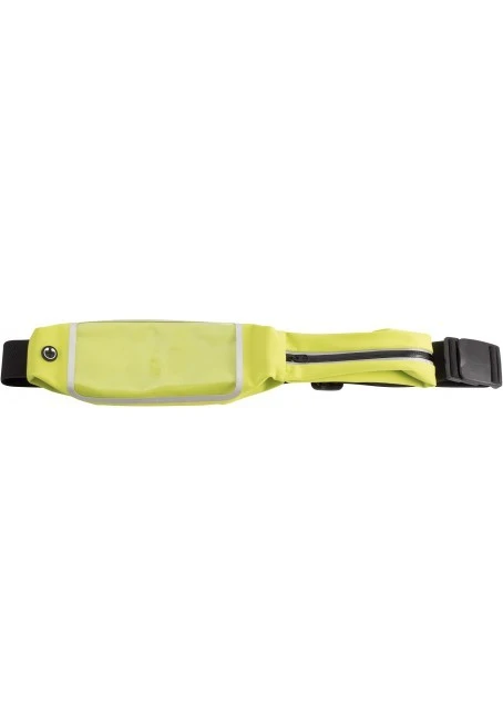Lycra® smartphone belt carrier with elasticated polyester strap and two zipped pockets. The main pocket with a transparent PVC window can hold a smartphone up to 5.5", the second pocket can hold a key, coins or small items. Headphones loop. Water repellent fabric, ideal for running.