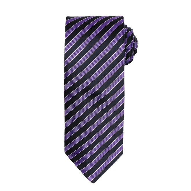 A full length tie with a contrast coloured stripes equal distance apart. A popular and trendy patterned tie to be worn with an everyday work shirt.