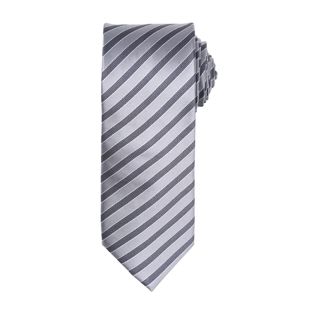 A full length tie with a contrast coloured stripes equal distance apart. A popular and trendy patterned tie to be worn with an everyday work shirt.