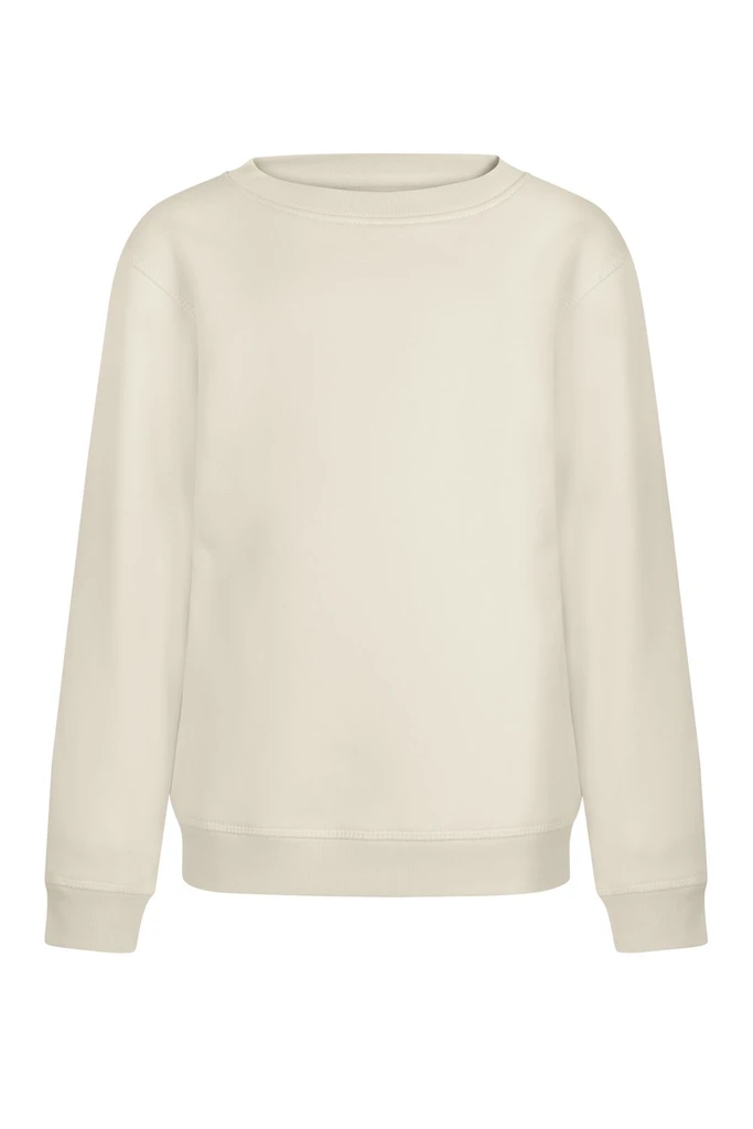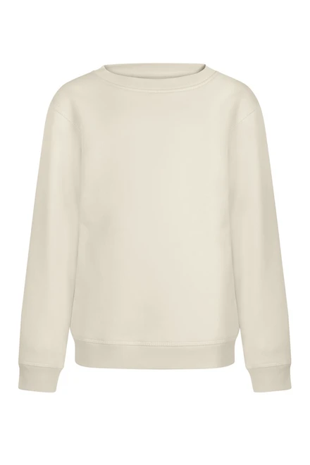 KID´S Crew neck Sweatshirt. Brushed Fleece. 85% Organic RingSpun Cotton - 15% Recycled Polyester. 300 g/m². Brushed fleece, soft, comfortable and warm Non-deformable collar, waistband and cuffs in ribbed knit fabric 1x1 Reinforced herringbone inner neck tape No brand label in neckline Unisex sizes: DUNE Women´s sizes: DUNE WOMAN