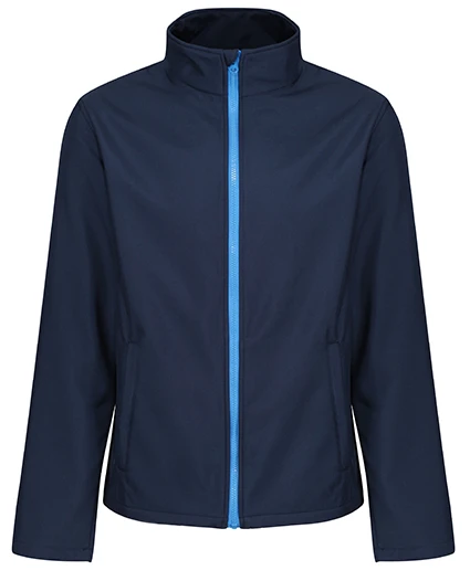 Warm-backed fully printable woven softshell, outer fabric contains recycled polyester yarns, full zip with inner zip guard, zipped chest pocket, zipped lower pockets, adjustable cuffs, ideal for screen, transfer and vinyl printing