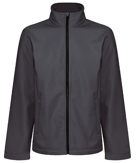 Warm-backed fully printable woven softshell, outer fabric contains recycled polyester yarns, full zip with inner zip guard, zipped chest pocket, zipped lower pockets, adjustable cuffs, ideal for screen, transfer and vinyl printing