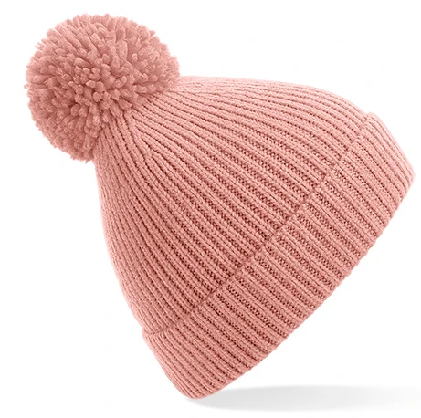 Engineered Knit Ribbed Pom Pom Beanie