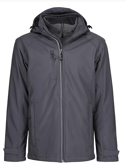 Warm backed woven Softshell XPT waterproof and breathable 3 layer membrane fabric, detachable hood with adjusters, detachable zip-off sleeves, 2 zipped lower and 1 zipped chest pocket, adjustable cuffs, reflective details for enhanced visibility, inner Fleece Jacket: 220 g/m², 100% Polyester (220 series anti-pill Symmetry fleece), full zip, side pockets