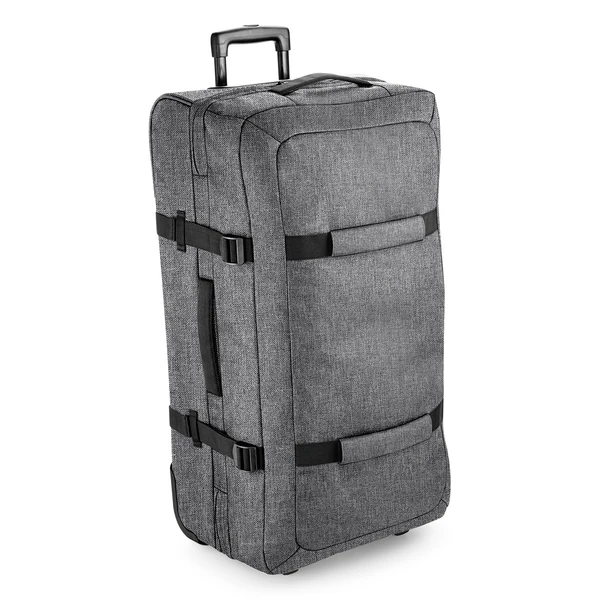 TearAway label for ease of rebranding, convenient dual compartment design for easy packing, lockable main compartment zip, external identification window, removable Rip-Strip™ handle wraps for ease of decoration, dual compression straps, high stability retractable twin handle, durable front grab handles, padded top and side handles, durable integrated skate wheels, can be further customised with BG485 Escape Handle Wrap
