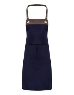 This Apron combines polyester-cotton with soft faux leather for a really cool contemporary design. The top of the Apron has a faux leather trim with two large eyelets which the neckband loops though. The neckband is adjustable on each side with two press stud buttons. A centre pocket stitched down the middle to create two handy bellow style pockets completes this quirky Apron.