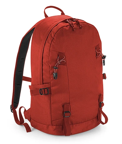 TearAway label for ease of rebranding, classic outdoor styling, trekking pole attachment points, internal zippered pocket with key clip, expandable side pockets, padded breathable back panel, compression straps, adjustable waist and chest straps, water resistant fabric, padded adjustable shoulder straps; Dimensions: 29 x 47 x 19 cm; Capacity: 20 litres