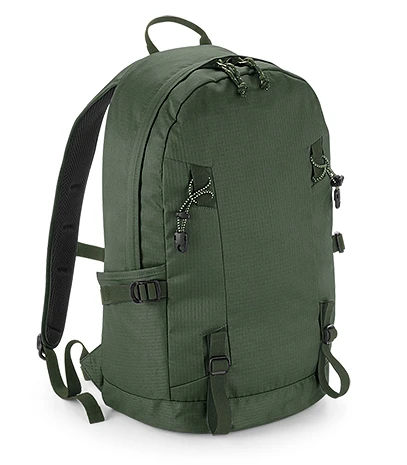 TearAway label for ease of rebranding, classic outdoor styling, trekking pole attachment points, internal zippered pocket with key clip, expandable side pockets, padded breathable back panel, compression straps, adjustable waist and chest straps, water resistant fabric, padded adjustable shoulder straps; Dimensions: 29 x 47 x 19 cm; Capacity: 20 litres