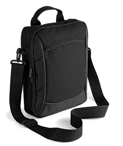 iPad/Tablet compatible; zippered plush lined iPad/Tablet pouch, multiple pockets, zippered front pocket, grab handle; Dimensions: 23 x 29 x 8 cm; Capacity: 4.5 litres