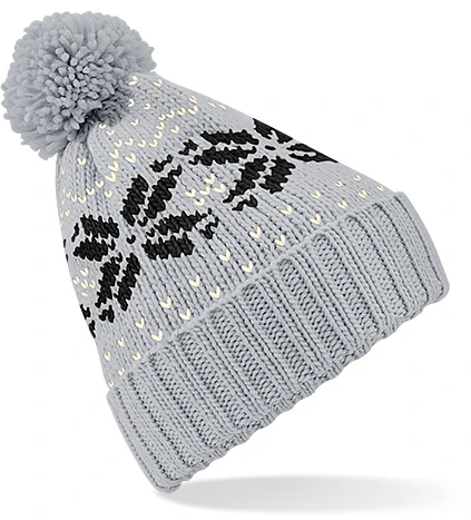 TearAway label for ease of rebranding, classic styling, self-coloured pom pom, cuffed design for optimal decoration, timeless Fair Isle pattern