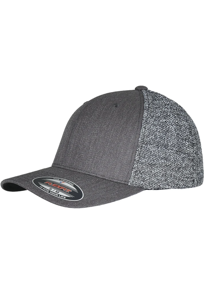 Finally a cap that reflects your character duality and also made of environmentally friendly recycled polyester! The two-parted Flexfit cap shows itself in classic unicolored and with a curved visor at the front. The back side is dominated by a trendy melange tech material that pleases the eyes as well as the head and fits with a large variety of outfits. The fit is excellent, as habitual from a Flexfit cap. Choose from different color options.