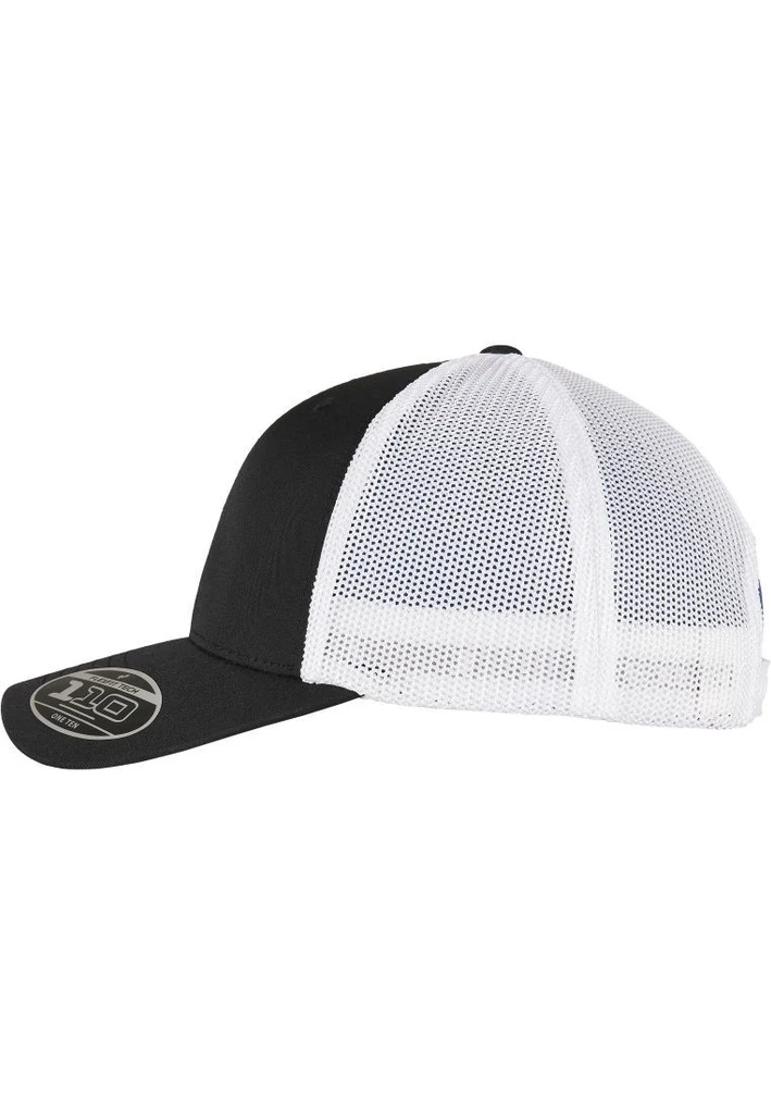 Fly look and environmentally friendly material: the two-tone trucker cap brings together what belongs together. Both, transparent mesh on the back and opaque front of the cap, are made of recycled polyester and thus combine a trendy look with a clear conscience. For providing a classy look the cap comes in black and white. Naturally, it also features a pre-bent, eight-fold stitched visor. Excellent wearing comfort comes through the consistent use of two technologies: integrated Flexfit ribbon and a color-matched snapback closure for individual size adjustment.