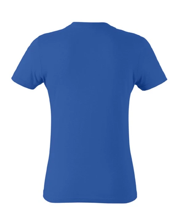 Material: 100% cotton; Heather Grey: 97% cotton, 3% polyester; HD, R6, RX, VF, VH, HP, H1: 50% cotton, 50% polyester; Weight: 165gsm (white: 160gsm); Crew neck with cotton/LYCRA® rib, self-fabric back neck tape, shaped side seams for a feminine fit, fine knit gauge for enhanced printability, tear away label, feminine Fashion Fit cut; Certificates: STANDARD 100 by OEKO-TEX®; WRAP