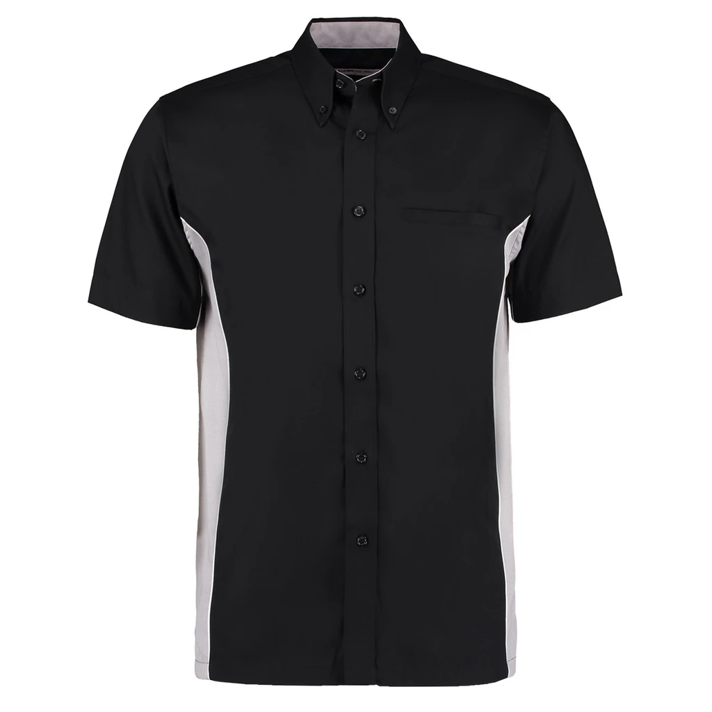 Two coloured easy iron sports shirt with piping in third contrast colour
