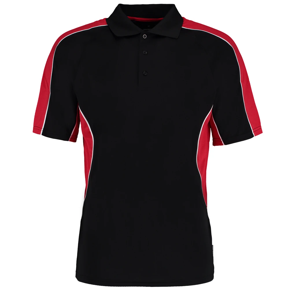 140gms • 100% Polyester • moisture management finish • 1x1 flat knit collar • 3 button placket • gamegear®/ cooltex® label printed on the inside back neck • contrast centre sleeve, underarm and side panels with white piping • cooltex® woven label sewn in outer side seam