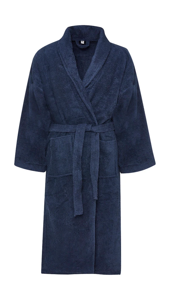Thick, cosy and comfortable, this Premium 100% combed cotton unisex bathrobe with it's shawl collar will be at home in any Bathroom, Hotel or Spa environment. Quality details including patch pockets, stylish cuffs and a hanging loop make it a Great Choice for customised Gifting too.