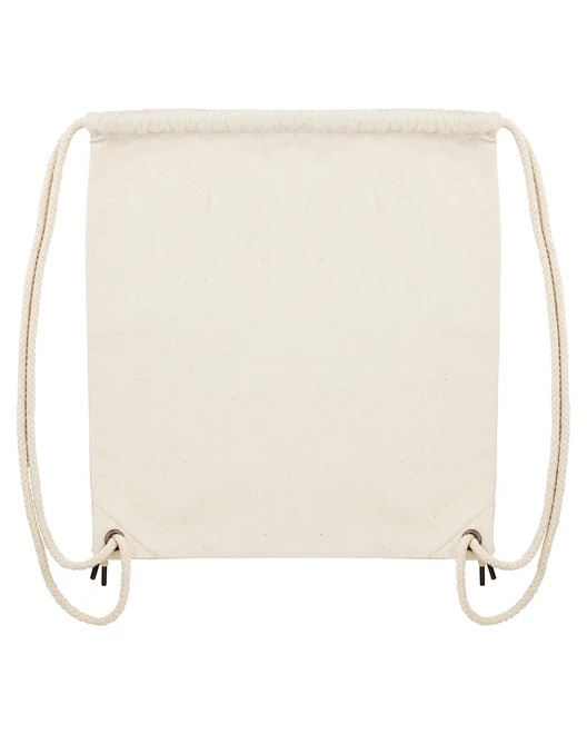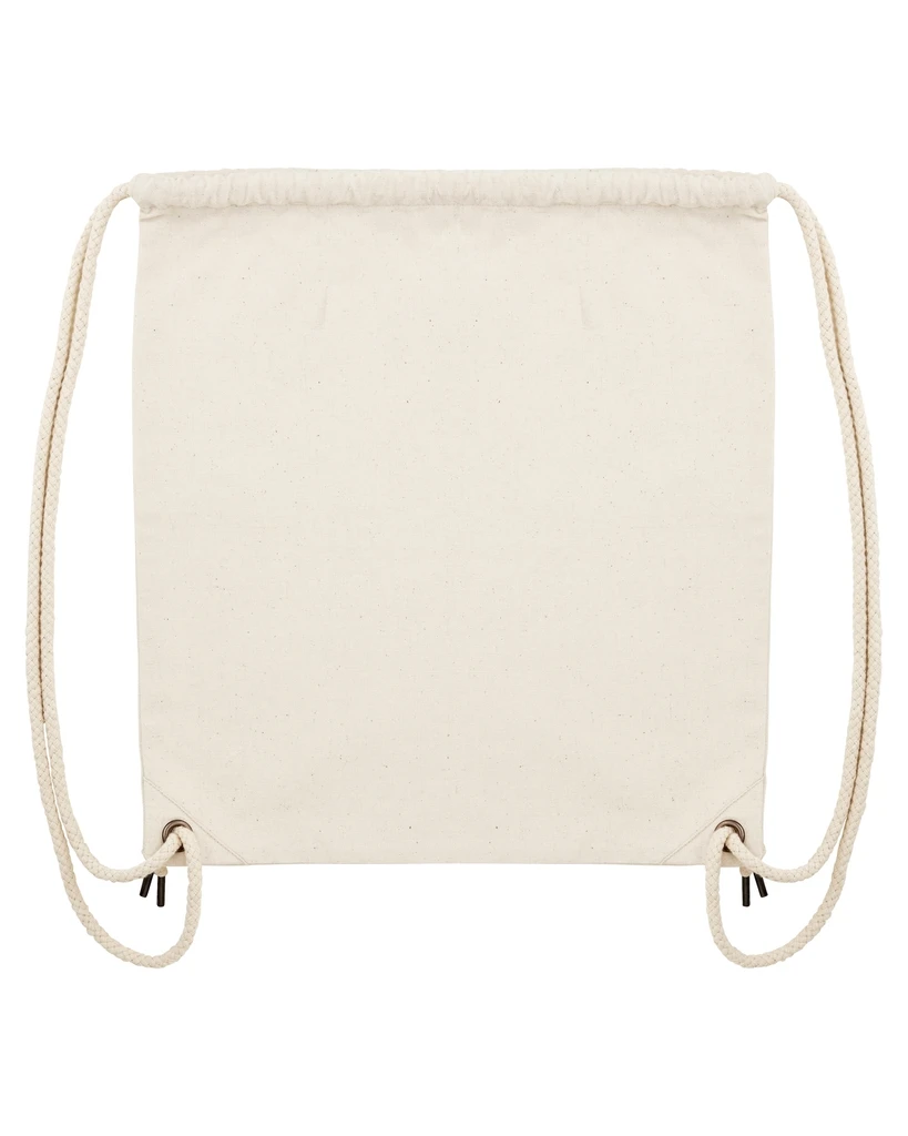 Weight: 300 gsm; Material: CANVAS - 80% RECYCLED COTTON, 20% RECYCLED POLYESTER; Top edge double folded for strength and clean finish, Reinforcing bartack at tunnel openings, Heavy drawcord straps with knot at ends, Gun metal eyelets and drawcord tipping, Reinforcing triangles at bottom corners; Size: 37 x 43 cm; Certificates: Global Recycled Standard, FAIR WEAR, PeTA - Approved VEGAN