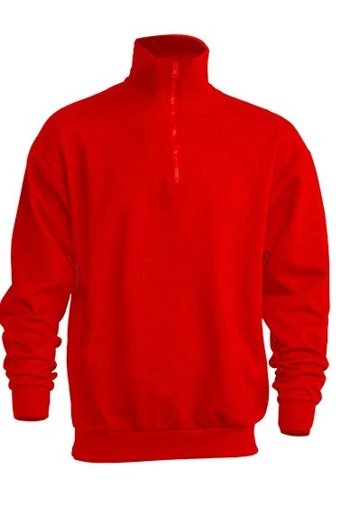 Half zip sweatshirt. 1x1 lycra rib in cuffs and waistband.
