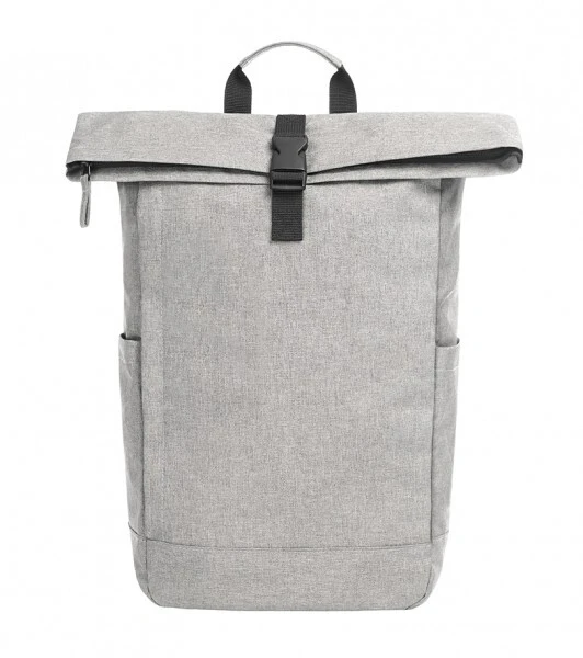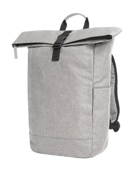 Urban backpack with zipped main compartment and buckle fastening; rPET - upper material; Padded pocket and organizer elements inside, zipped outer pocket on side, two side pouches for bottles etc., zipped pocket on back, padded strap system, handle