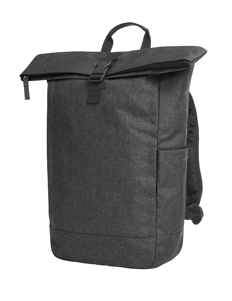 Urban backpack with zipped main compartment and buckle fastening; rPET - upper material; Padded pocket and organizer elements inside, zipped outer pocket on side, two side pouches for bottles etc., zipped pocket on back, padded strap system, handle