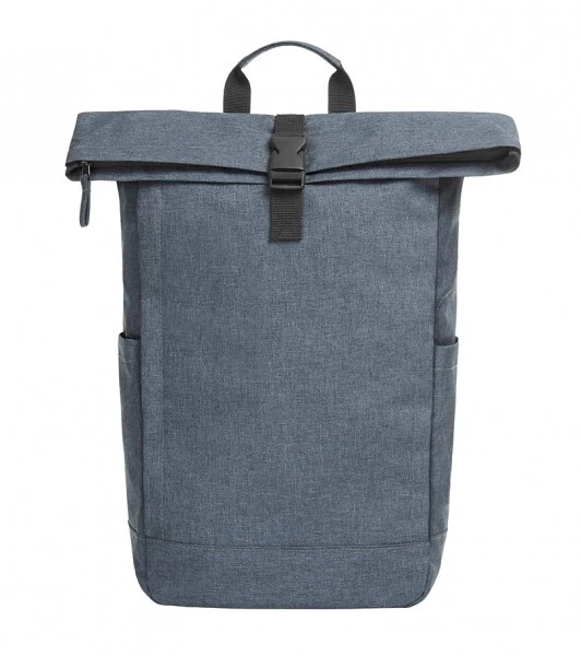 Urban backpack with zipped main compartment and buckle fastening; rPET - upper material; Padded pocket and organizer elements inside, zipped outer pocket on side, two side pouches for bottles etc., zipped pocket on back, padded strap system, handle