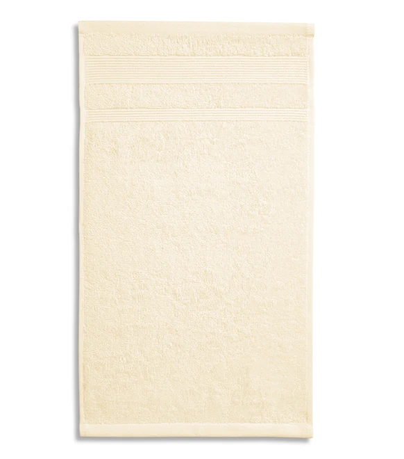 Certified organic cotton, heavy weight woven terry, decorative double bordure, soft and highly absorbent fabric, label useful as a hanging loop, gift suitable for embroidery, size: 30 x 50 cm, bordure: 3,5 cm, 1,5 cm