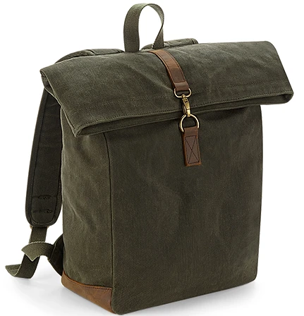 TearAway label for ease of rebranding, genuine leather accents, zippered main compartment, secure clip closure, antique brass effect fittings, fully lined, internal slip pocket, hidden lining zip for easy decoration access, laptop compatible up to 15.6", cotton webbing grab handle, padded back panel, padded adjustable shoulder straps; Dimensions: 30 x 40 x 14 cm; Capacity: 9 litres