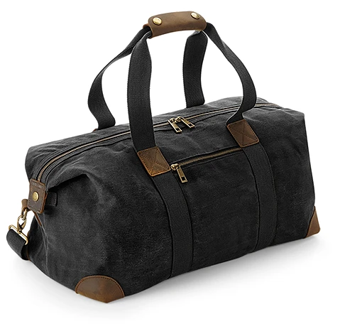 TearAway label for ease of rebranding, genuine leather accents, extra long main compartment zip for easy access, snap fastening fold down ends, cotton webbing carry handles, antique brass effect fittings, fully lined, hidden lining zip for easy decoration access, internal valuables pocket, detachable adjustable shoulder strap, can be carried by hand or over the shoulder
