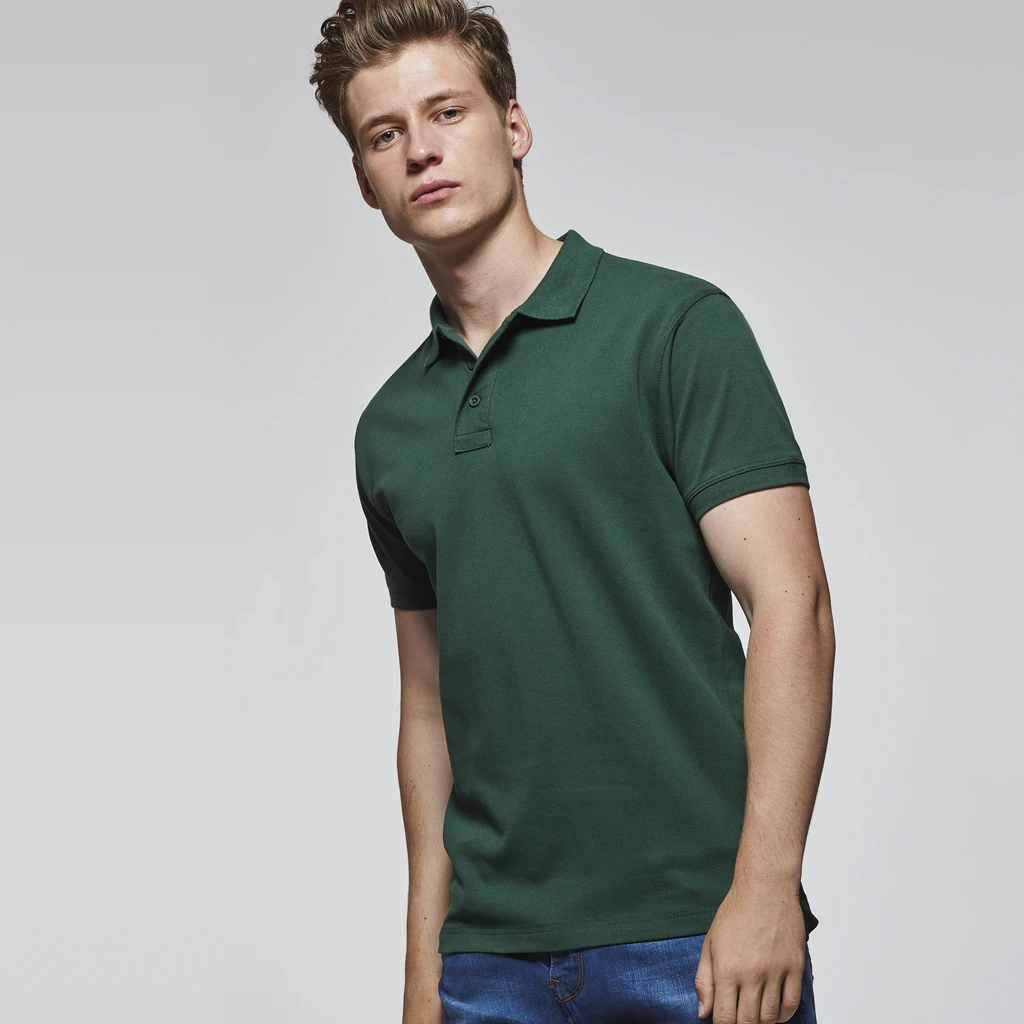 High quality polo shirt, short sleeve in confortable fabric. Collar with 3 buttons placket to tone. 1x1 ribbed collar and cuffs. Reinforced covered seams in neck. Side slits with cover stitching to tone. The pattern of the back is slightly longer than the front. Double stitching on shoulders, sleeves and hem of the garment.