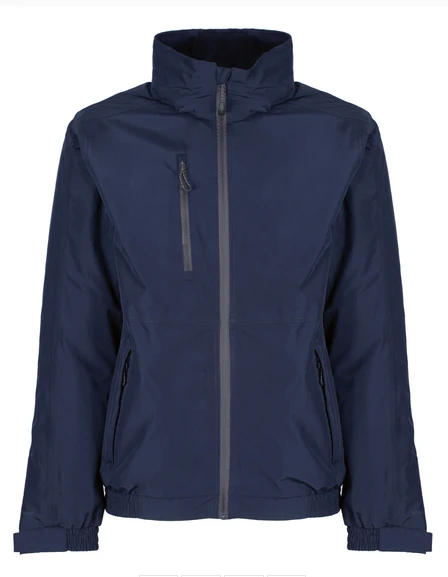 100% recycled waterproof and breathable polyester material Isotex 10,000 with recycled TPU membrane, sealed seams and DWR (durable water repellent) finish for all-weather protection, 100% recycled polyester material with fleece lining, with recycled Thermoguard body insulation 120 gsm, hidden hood, 2 zipped bottom pockets and zipped chest pocket, hidden zipper in the lining for access to embroidery, made of at least 40 plastic bottles