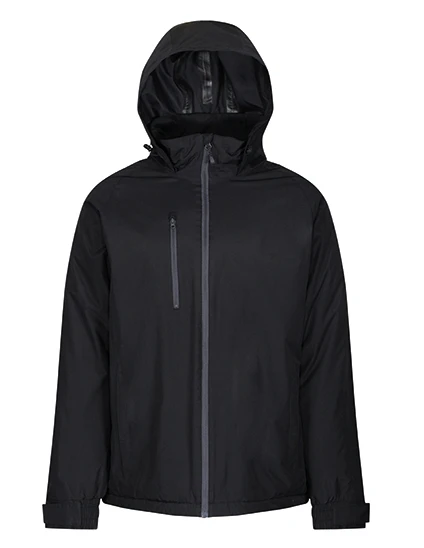100% recycled waterproof and breathable polyester material Isotex Stretch 10,000 with recycled TPU membrane, sealed seams and DWR (durable water repellent) finish for all-weather protection, 100% recycled polyester material with fleece lining, with recycled Thermoguard 120 body insulation gsm, hidden hood, 2 bottom zip pockets and a zipped chest pocket, hidden zip in the lining allows access to the embroidery, elastic drawstrings on the hem, made of at least 40 plastic bottles