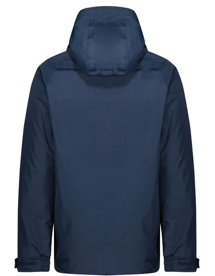 100% recycled waterproof and breathable polyester material Isotex Stretch 10,000 with recycled TPU membrane, sealed seams and DWR (durable water repellent) finish for all-weather protection, 100% recycled polyester material with fleece lining, with recycled Thermoguard 120 body insulation gsm, hidden hood, 2 bottom zip pockets and a zipped chest pocket, hidden zip in the lining allows access to the embroidery, elastic drawstrings on the hem, made of at least 40 plastic bottles