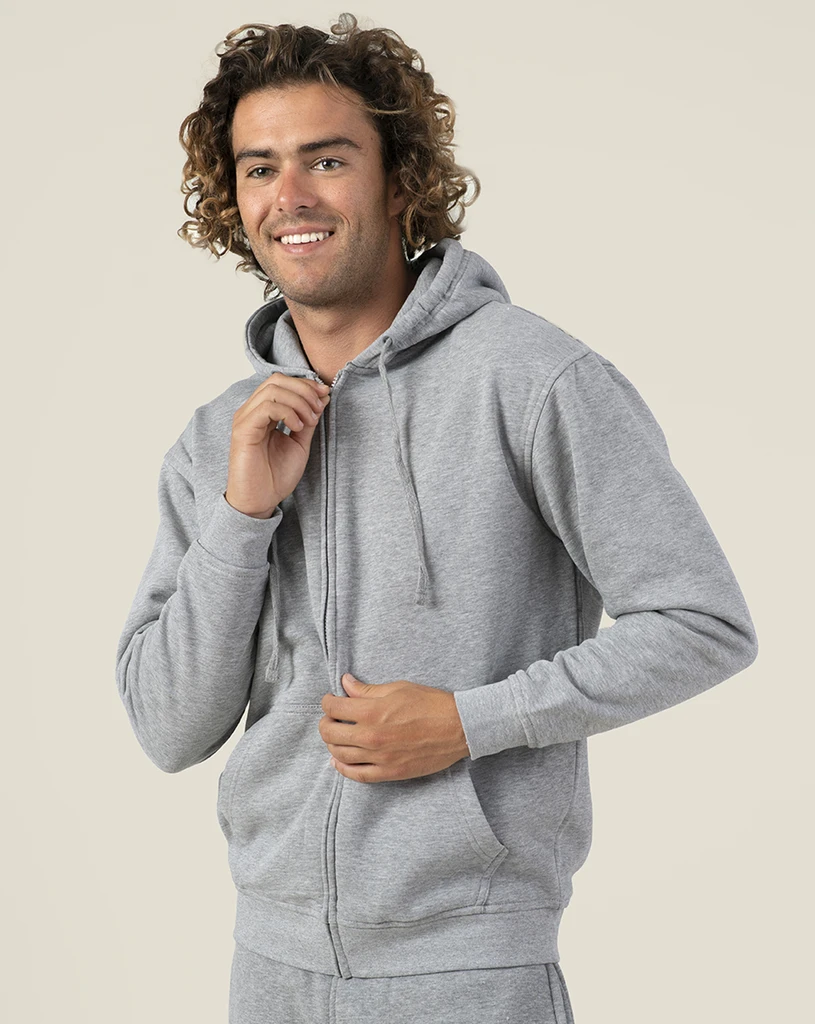 Hooded sweatshirt with full zipper cover and kangaroo pocket.