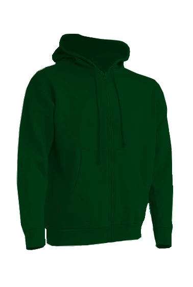 Hooded sweater. Matched colour drawcord. Full zip. Kangaroo pocket. 1x1 Rib with lycra in cuffs and waistband.
