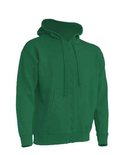 Hooded sweater. Matched colour drawcord. Full zip. Kangaroo pocket. 1x1 Rib with lycra in cuffs and waistband.