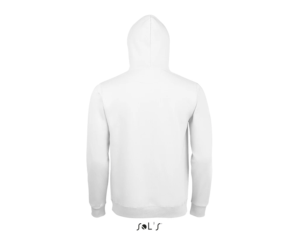 QUALITY: FLEECE 280 LSF (Low Shrinkage Fabric), 80% ringspun cotton, 20% polyester, Brushed lining, Outside: 100% cotton; Set-in sleeves, Front pouch pocket, Cut and sewn, Lined hood with drawcord, 2x2 ribbed cuffs and hem, Half moon inside collar, Taped neck; Certificate: STANDARD 100 by OEKO-TEX®
