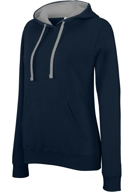 80% combed cotton / 20% polyester. Brushed fleece. Earphone port in kangaroo pocket and neck. Ribbed cuffs and hem. Lined, contrasting hood with drawstring.