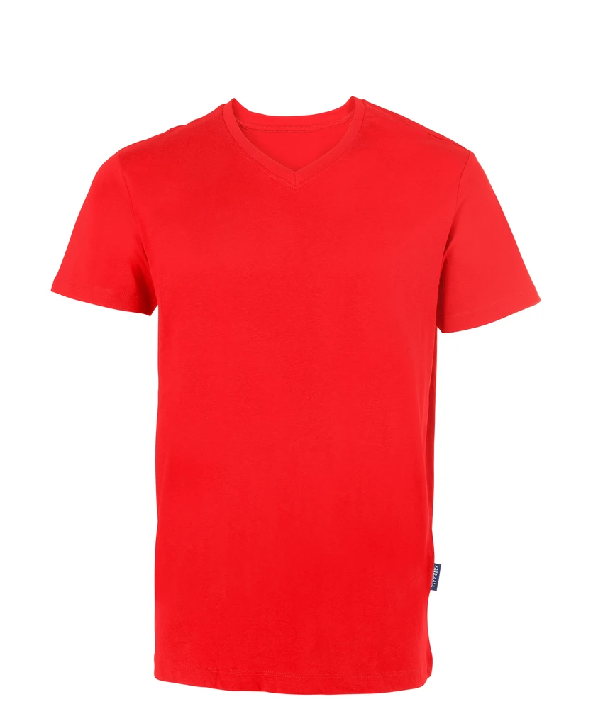 Our HRM V-neck Men‘s T-shirts are extremely durable because they are made from high quality, combed and ring-spun, 100% organic, GOTS-certified cotton. The wearing comfort of our T-shirts is characterized by the soft and supple materials and the excellent fashionable fit. The double-stitched shoulder-to-shoulder neckband enhances the ergonomic feel and adds extra stability to the T-shirt. Our T-shirts are, except for the woven Fair4All flag-label in the left side seam, label-free and are colourfast washable up to 60°C. Our t-shirts have a very long life due to the anti-shrink and anti-pilling treatment. Thanks to their fine surface structure, they are particularly suitable for textile finishing.