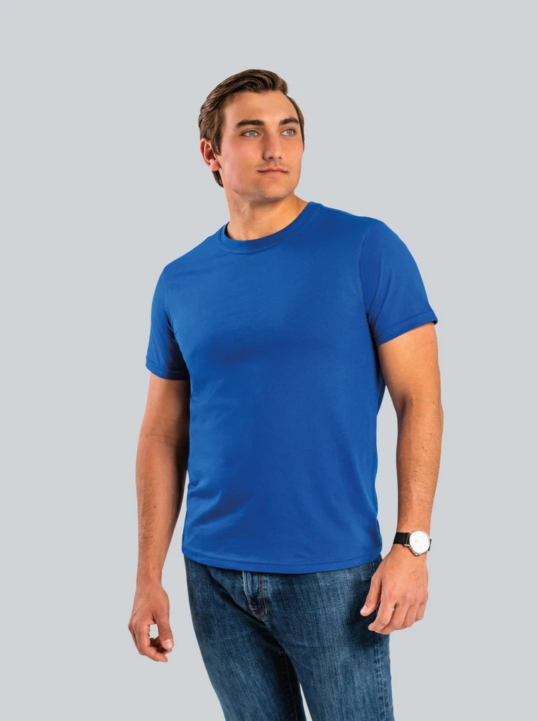 The HRM Luxury T-shirts are made from high-quality, combed, ring-spun and 100% certified organic cotton. The wearing comfort of our Luxury T-shirts is particularly characterized by the soft and supple materials and the excellent, fashionable fit. The Luxury T-shirts are label-free and washable up to 60°C. They are available in 8 different colors with a V-neck or roundneck neckline and, thanks to their surface structure, are particularly suitable for textile finishing.