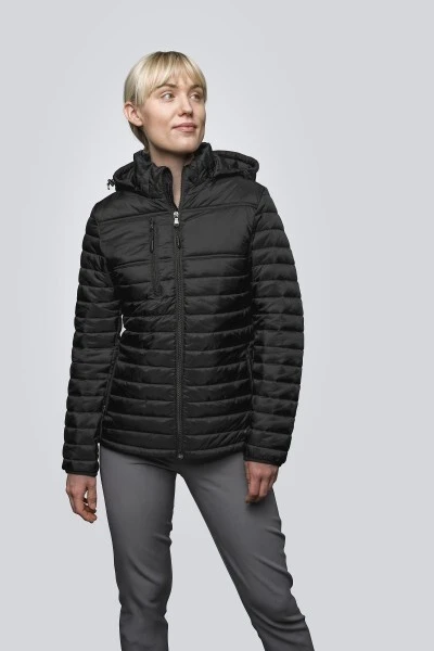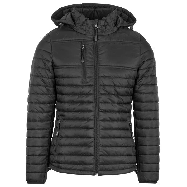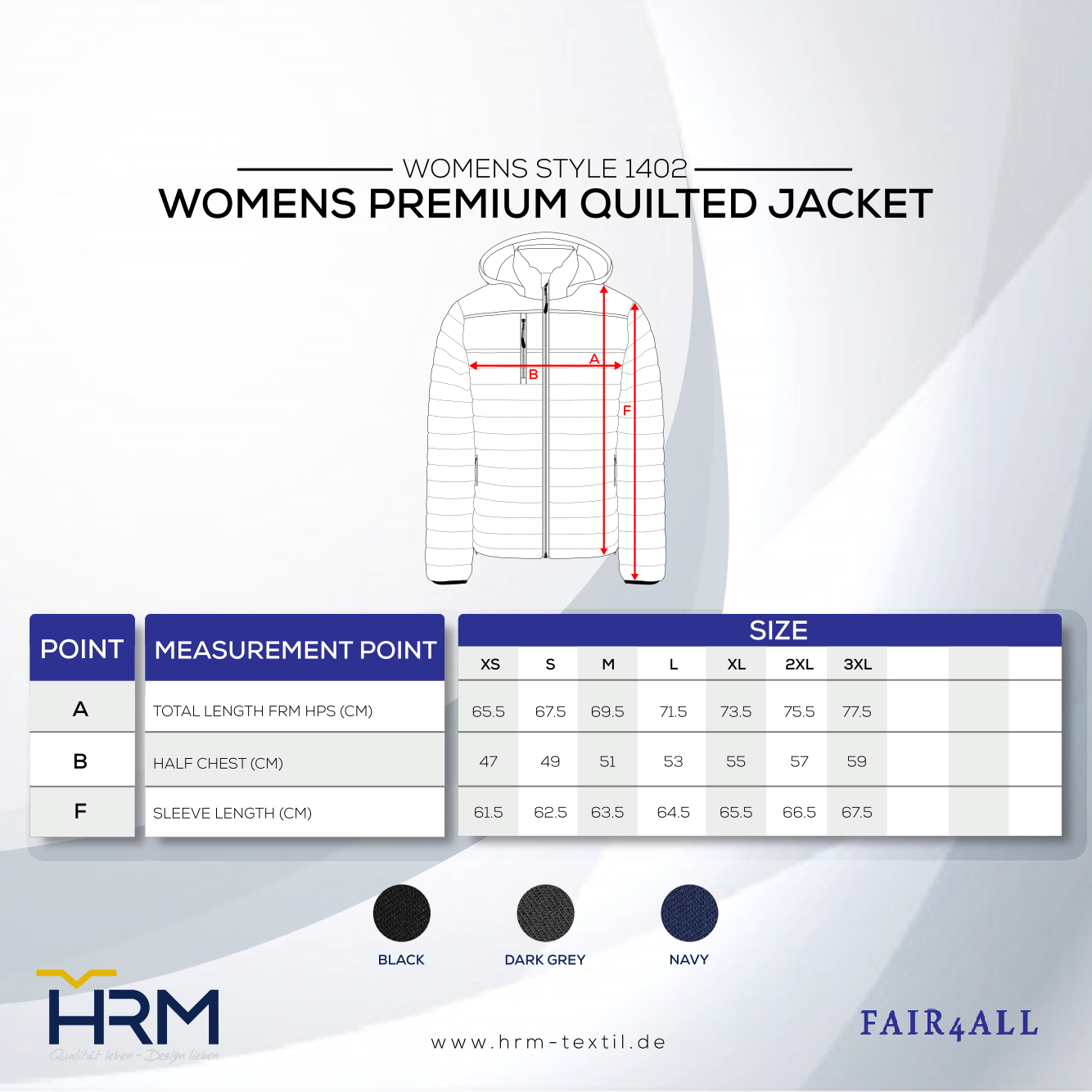 The HRM quilted jacket for women is made of 100% polyamide, which provides a particularly comfortable feeling due to its lightness and breathability. The jacket is equipped with two side pockets with zipper, which provide generous storage space. In addition, it has two inside pockets for personal items. An additional finishing pocket on the left inside offers plenty of space for any kind of embroidery. The special highlight of the quilted jacket is the detachable hood as well as its fashionable cut, which make it perfect for everyday use as well as for outdoor activities. The high-quality workmanship guarantees not only a long durability, but also an appealing look. Our HRM quilted jacket convinces not only with its functionality, but also with its fashionable appearance and high wearing comfort. An indispensable companion for any occasion with that certain something.