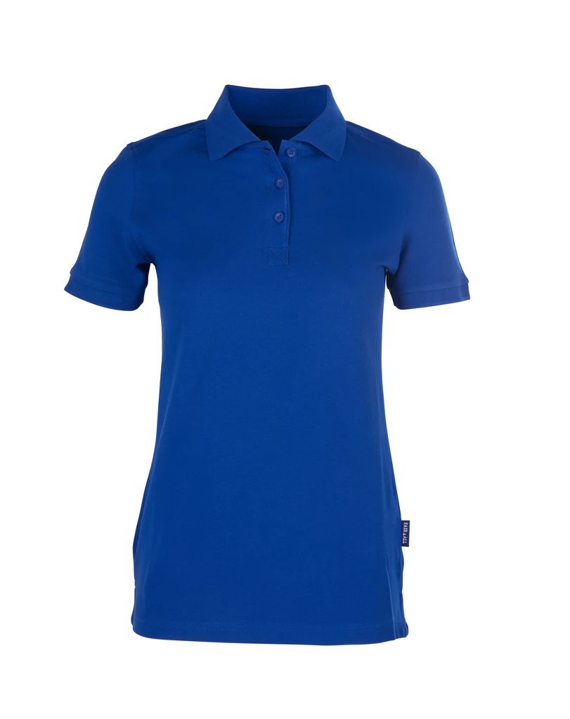 Our HRM Women‘s Heavy Stretch Polo Shirts are made of a very robust, ring-spun, fine-mesh piqué made of 95% cotton and 5% elastane. They have a comfortable fashionable cut and a reinforced neckband as well as collar and sleeve ends made from 1x1 rib knit. The tone-in-tone 3-button placket gives the Heavy Stretch Polo-Shirts a balanced look down to the detail. The reinforced side slits and the shoulder-to-shoulder neckband ensure a great wearing comfort and a long durability. The Heavy Stretch polo shirts, except for the woven Fair4All flag-label in the left side seam, are labelfree and particularly easy to care by the anti-shrink and anti-pilling pre-treatment. Due to the elastane content, the wear comfort and the figure-fit are increased. They are suitable for a wide range of workwear applications.