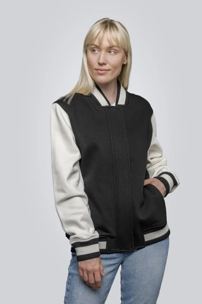 The HRM Women´s College Jacket is an absolute must-have for anyone in search of a stylish, comfortable, and durable garment. Made from a soft blend of 70% cotton and 30% recycled polyester, it's not only environmentally friendly but also pleasant to wear. Thanks to its high-quality craftsmanship and sporty-casual look, the jacket is versatile and can be paired with various outfits. The collar, hem, and sleeve cuffs are adorned with 2x2 striped rib knit, ensuring a perfect fit. The jacket can be closed with a high-quality zipper and a color-coordinated strip via Velcro. Whether for everyday wear, leisure activities, or even business casual settings, the HRM College Jacket is the ideal companion.