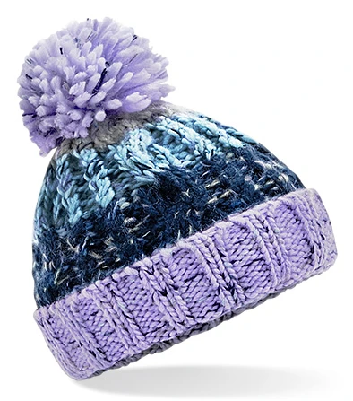 TearAway label for ease of rebranding, Heavyweight multi yarn cable knit design, Non-removable pom pom for added safety, Bold four colour stripe design, Luxurious Shearling thermal band for extra warmth, Cuffed design for optimal decoration