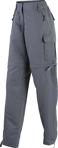 Vertical side zippers allow leg sections to be slipped off easily over footwear